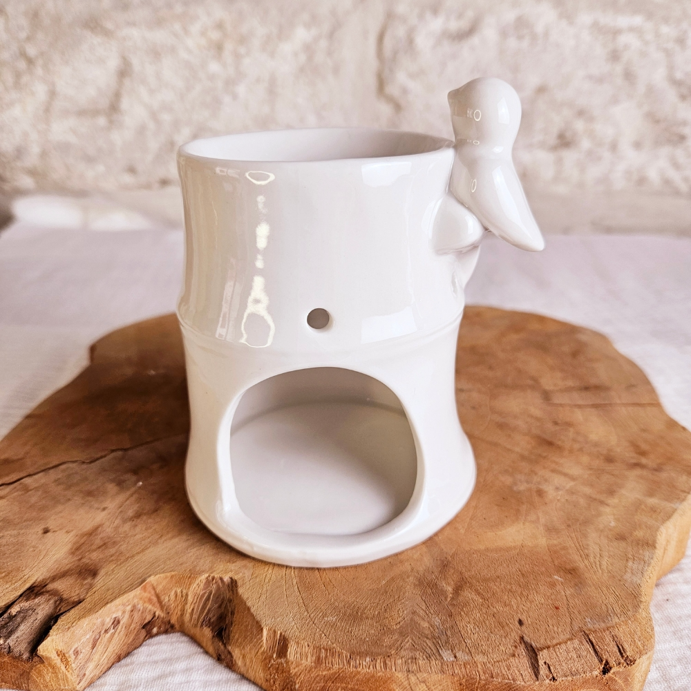 Découvrez ce joli réchaud modèle BAMBOU en céramique blanche.