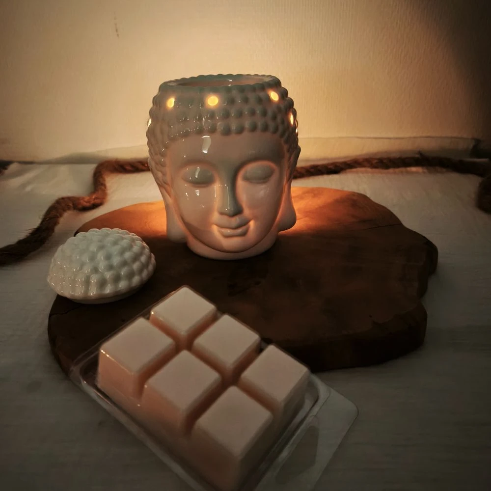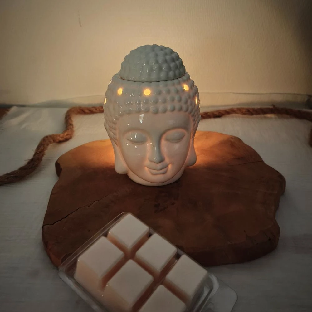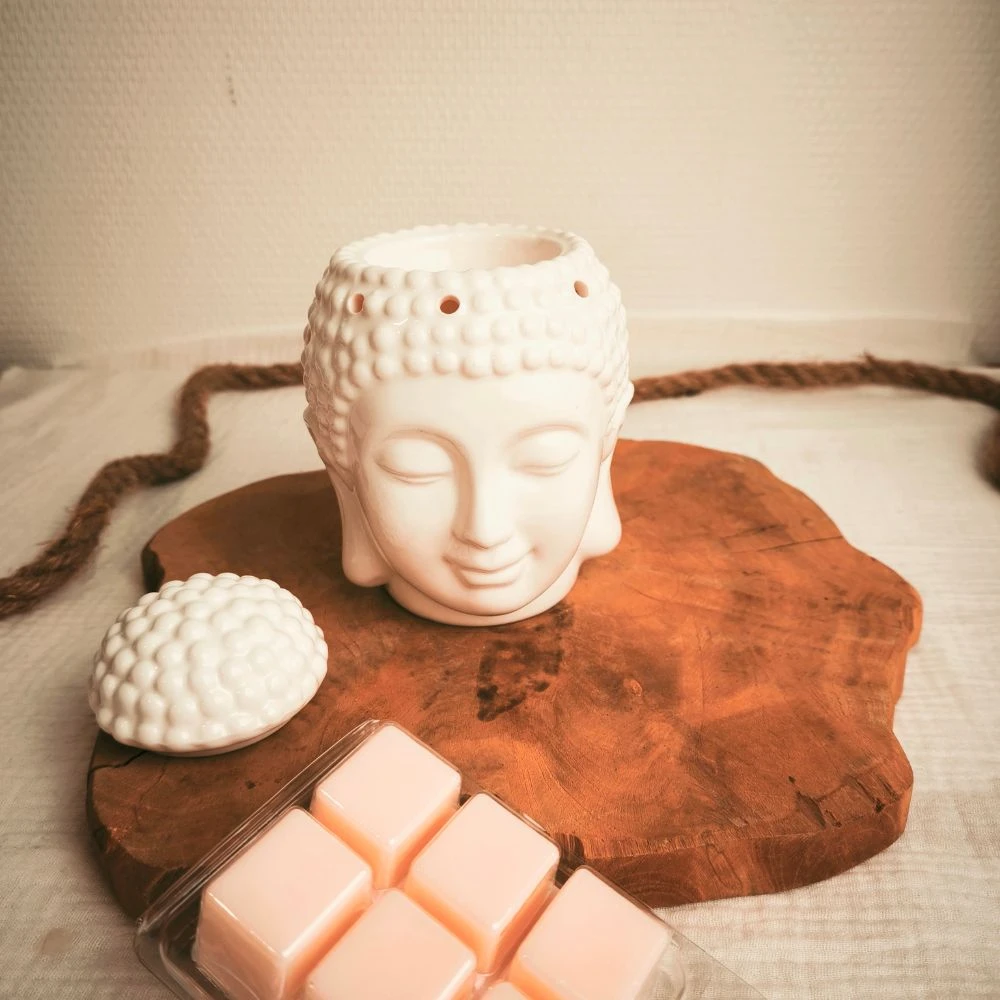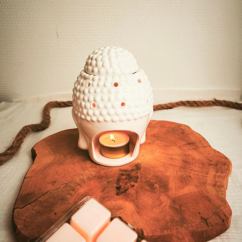 BUDDHA, un réchaud en céramique blanche qui apporte calme et sérénité. Sa forme de tête de Bouddha diffuse doucement la lumière et crée une ambiance apaisante, parfaite pour vos moments de méditation, de détente ou de cocooning. Une pièce décorative empreinte de paix intérieure, idéale pour soi ou à offrir.